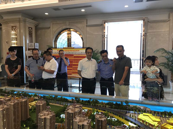 2017年6月23日上午,檢查工作組:區(qū)國土局房管中心張家榮主任、張文彥副主任,工商局傅局長、廣告科李紅星科長,合同科劉輝科長,發(fā)改委張小春所長及區(qū)房管中心程小芳科長等一行蒞臨南濱上院檢查工作;集團(tuán)公司董事長李總現(xiàn)場匯報(bào)項(xiàng)目情況。在南濱上院銷售部沙盤前,李總向到訪領(lǐng)導(dǎo)們詳細(xì)介紹了南濱上院的項(xiàng)目建設(shè)、規(guī)劃、發(fā)展等情況;同時嚴(yán)格按照房地產(chǎn)市場規(guī)范監(jiān)督機(jī)制執(zhí)行,杜絕違法違規(guī)行為。到訪領(lǐng)導(dǎo)對南濱上院項(xiàng)目的高標(biāo)準(zhǔn)建設(shè)給予了積極評價,公司的宣傳銷售行為符合各個主管部門的高度肯定。張主任特別強(qiáng)調(diào),要作為一項(xiàng)長期行工作來抓,嚴(yán)格遵守法律法規(guī)及相關(guān)管理機(jī)制;出現(xiàn)新情況,新問題,有針對性地及時處理及匯報(bào)。通過大家的團(tuán)結(jié)協(xié)作,為推進(jìn)全區(qū)房地產(chǎn)事業(yè)健康發(fā)展做出更大的貢獻(xiàn)。